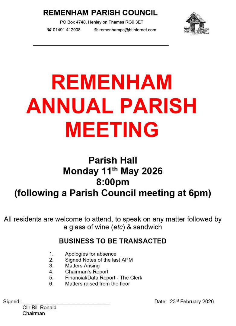 Parish hall enquiries: remenhamhall@remenhamparish.org.uk