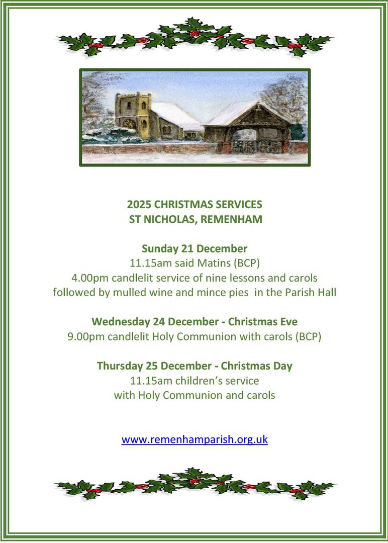 9.00pm candlelit sung Holy Communion (BCP) with carols